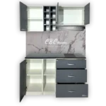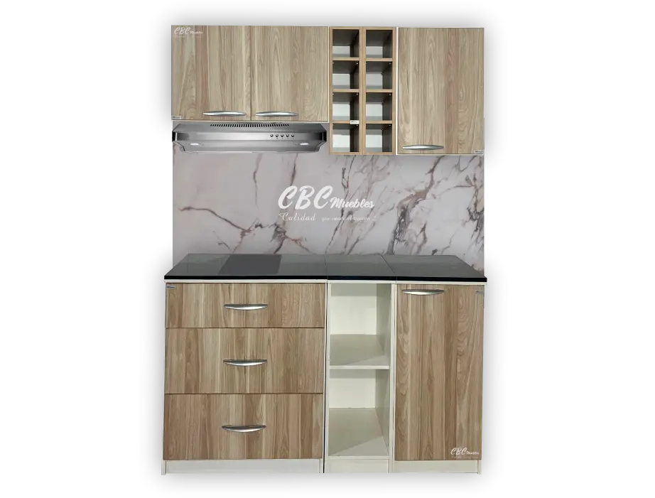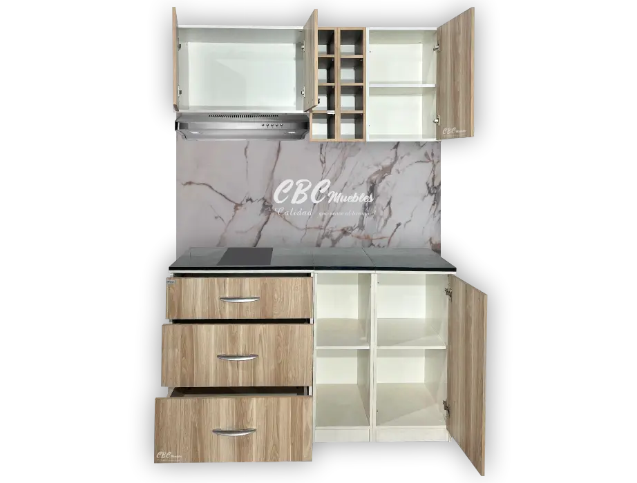 - Este mueble de cocina viene con la estructura MDP de color blanca cuenta con una Alacena de 60 cm de alto y una profundidad de 37 cm, con puertas color con espacio para colocar platos y tazas, un porta vinero integrado y un espacio para instalar un porta extractor de hasta 70 cm.