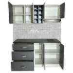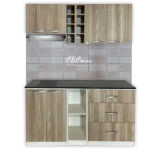 - Este mueble de cocina viene con la estructura MDP de color blanca cuenta con un Alacena de 60cm de alto y una profundidad de 37cm, con puertas color para guardar ollas o sartenes, acompañado de un porta vinero y un espacio para instalar un porta extractor de hasta 70cm.