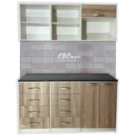 - Este mueble de cocina viene con la estructura MDP de color blanca cuenta con una Alacena de 60 cm de alto y una profundidad de 37 cm, con puertas color, una estantería abierta especial para colocar utensilios de acceso rápido y un espacio para microondas de hasta 30 litros.
