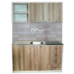 Este moderno mueble de cocina combina funcionalidad y diseño contemporáneo. Incorpora una bacha integrada, perfectamente alineado y en su otro costado cuenta con una mesada de color oscuro, ideal para facilitar la limpieza y evitar la acumulación de grasa o manchas. Fabricado con materiales resistentes de buena calidad.