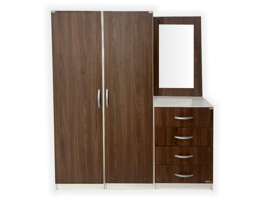 - Además, cuenta con un sector de 3 cajones con guías telescópicas, con espacio para prendas pequeñas o accesorios personales y una pantalonera que aporta orden en las prendas evitando arrugas en ellas.