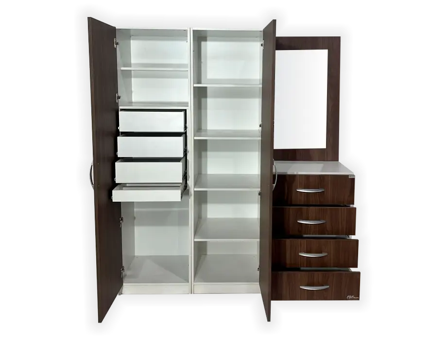 - En su interior cuenta con una variedad de estantes superiores e inferiores que pueden ser utilizado para colocar ropa doblada.