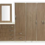 - Por otro lado, cuenta con una cómoda de 85cm de altura y una profundidad de 50cm, con una superficie blanca que puede ser utilizado como espacio decorativo, acompañado de 4 cajones amplios con guías telescópicas que ayuda en el orden de las prendas dobladas.
